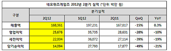 ▲ 네오위즈게임즈 2012년 2분기 실적