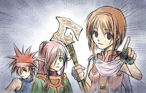어슴프레 저녁이 다가오고 있는 산중. 구름이 낀 하늘은 당장이라도 비가 쏟아질 듯 하고, 그런 어두운 가운데 까마귀들이 여기저기 앉아 있는 낡은 고성의 모습은 당장이라도 무엇인가 튀어나올 듯만 하다. 그런 성을 올려다보고 있는 세 사람의 모습이 있다. 은빛 갑주에 장검을 찬 탄탄한 모습의 남자, 체인 메일을 걸치고 목에는 성표를 걸고 있는 모습의 엘프 여자, 그리고 헉헉대면서 숨을 몰아쉬고 있는 로브를 걸치고 한손에는 책을 들고 있는 여자.