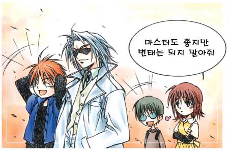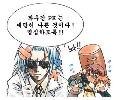 : 어허, 세 사람의 눈빛을 보니 온라인 게임에서 또 하나의 큰 문제인 PK도 생각나는군(-_-;;;).