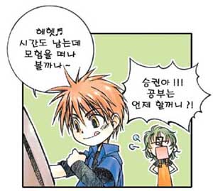 그래! 난 언제나 열심히 공부한다고!(저게 누나 앞에서 무슨 망신을 시키려고!)