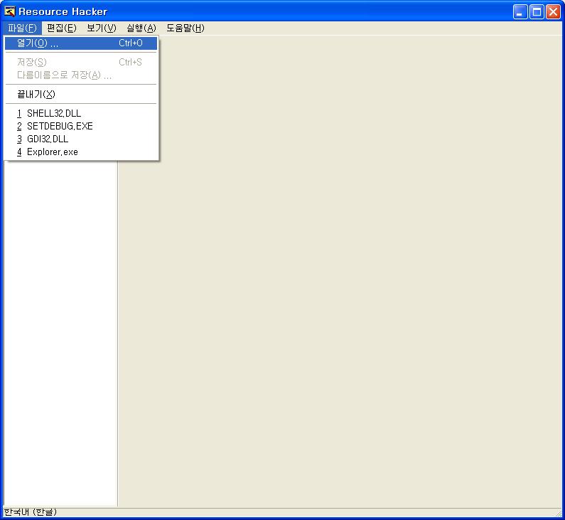 리소스 해커를 처음 실행시키면 다음과 같은 화면이 나온다