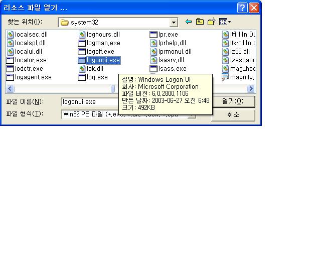 지난번에 이어서 윈도우즈를 꾸미는 여러가지 방법중 직접 나만의 로그온 화면을 만드는 방법을 알아보도록 하겠다. 그에 앞서 많은 분들이 메일로 ntoskrnl.exe파일을 바꾸는 방법이 어렵다는 문의를 주셨기 때문에 그 부분을 다시 한번 설명하기로 한다.