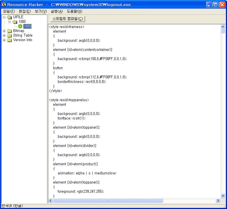 logonui.exe 파일을 불러들이면 창 좌측에 새로운 항목들이 표시된다.