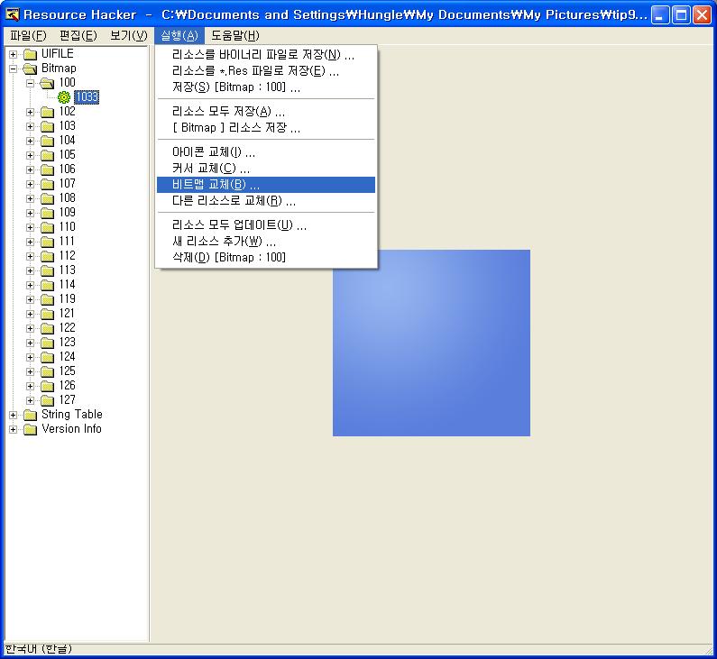 먼저 실행 -> 비트맵 교체를 선택한다.