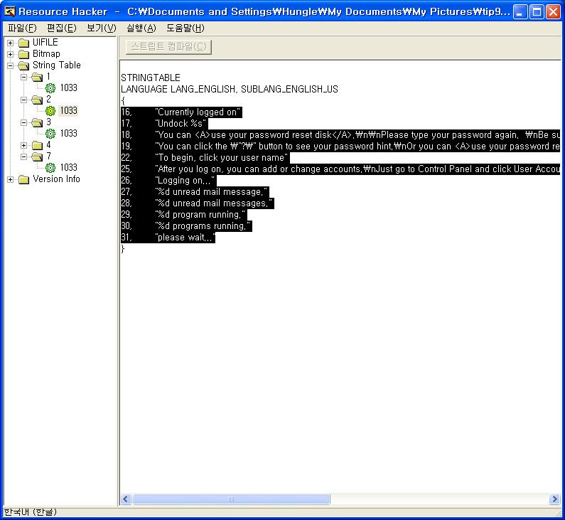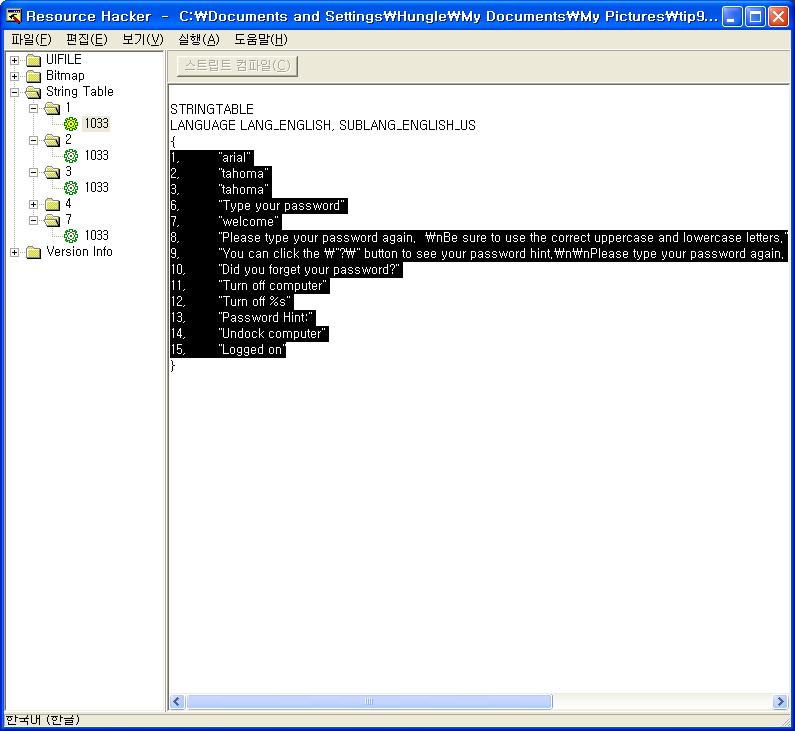 String Table 항목은 로그온 화면에 표시되는 각종 택스트에 관한 설정 부분이다. 언뜻 복잡해보이지만 조금만 건드려보면 상당히 쉽다.