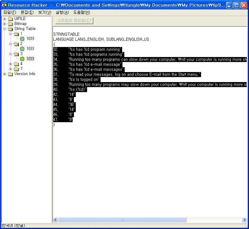 새롭게 표시되는 항목은 UIFILE, Bitmap, String Table, Version Info의 네가지인데 이중 Version Info는 건드릴 필요 없고 앞의 세가지 항목만 편집해주면 된다. 각 항목의 역할을 간단히 설명하자면..