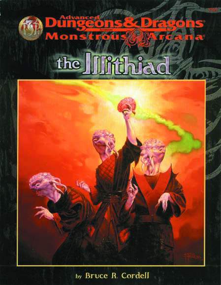 마인드 플레이어(Mind Flayer) 이번에 거론되는 다른 몬스터들에 비하면 비교적 약할지 몰라도 마인드플레이어는 대단히 강한 존재다(발더스 게이트 2를 해본 게이머라면 이해할 것이다). 7레벨에 해당하는 마법사 파워로 각종 강력한 마법, 특히 인간/몬스터 매혹 마법을 주로 사용하며, 인프라비전(infravision: 적외선시각)을 가지고 있다. 마인드 플레이어의 정신적 능력에 대해 저항할 경우는 내성굴림에서 -4의 벌점을 받게 된다(내성굴림시에 나온 주사위 숫자에서 -4를 한다는 뜻이다). 마인드 플레이어의 입 주위에 난 촉수에 명중된 경우 그 촉수는 1~4 라운드 안에 희생자의 뇌에 도착하게 되고, 그 뒤는 뇌를 모조리 흡수당하게 된다. 물론 즉사하게 된다. 또한 마인드 블래스트라는 독특한 능력에 명중당할 경우, 마법 지팡이류 내성굴림(벌점 -4)에 실패하면 1D10+2 라운드 동안 스턴(마비) 상태가 된다. |