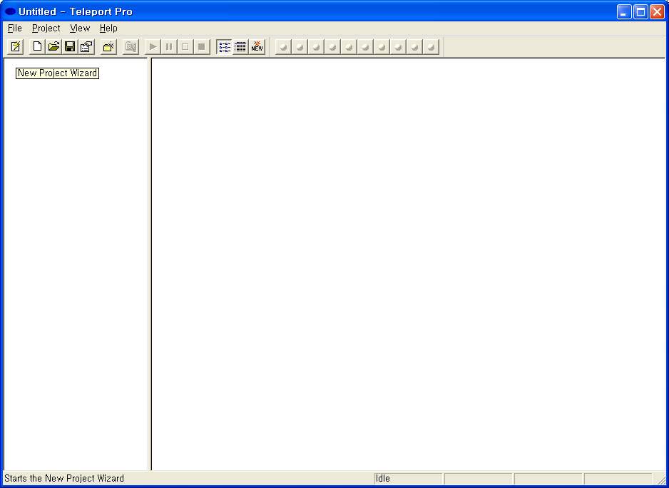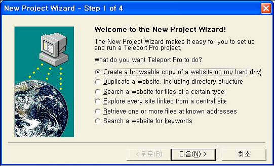 A. Teleport Pro를 사용하려면 '프로젝트(Project)'를 통해 어떤 파일을 저장할 것인지, 어느 주소를 기준으로 파일을 탐색해나갈 것인지 지정해줘야 한다. 프로젝트를 만드는 방법은 몇가지가 있지만 가장 빠른 것은 프로그램 툴바의 맨 왼쪽 따로 떨어져있는 번개모양의 아이콘을 누르는 것이다.