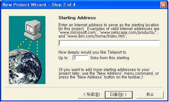 B. 웹 페이지를 복사할 방법을 선택했으면 두번째 단계로 '시작주소(Starting Address)'를 지정해 줘야 한다.