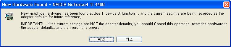 현재 어댑터의 기본 해상도 및 색상, 코어와 메모리의 클럭수치를 표시한다. 표시된 값이 정확한지 반드시 확인하도록 하자.
