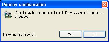 ▶ Apply 버튼을 누르면 확인창이 뜬다. 만약 정해진 시간 내에 Yes버튼을 누르지 못하면 이전 설정으로 자동 복구된다 |