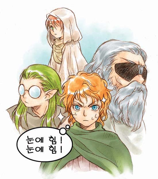 혜지: 아유. 전 영화 보다가 속상한 것이 있었어요. 모리아 갱도에서 프로도가 미스릴 갑옷을 입고 트롤에게 창으로 찔려서 모두 죽은 줄 알잖아요. 그런데 거기서 프로도가 살아나는걸 보고 관객중에 몇몇 사람들이 비웃는 듯 웃더라구요. 미스릴 갑옷이 어떤 성능인지 안다면 저렇게 웃지 못할텐데….