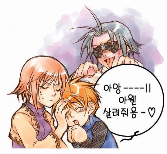 승권: 으아~! 일요일 꼭두새벽(현재 11시-_-)부터 누가 이렇게 전화를 해대는거야?! 오늘 TRPG 모임도 없어서 좀 잠자려 했는데…. 분명 게임방 가자고 전화한 지욱이 녀석이겠지?(전화를 받으며) 야! 임마! 아침부터 전화질이야 전화질은!!!
