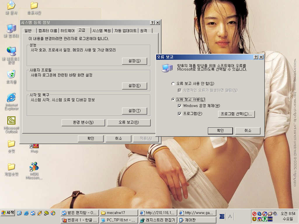 윈도우XP를 쓰다보면 응용프로그램을 실행하다가 에러가 났을 경우 마이크로소프트로 오류보고를 하겠느냐고 물어오는데 오류보고를 한다고 해도 고쳐주는 것도 아니고 특히 새로 하드웨어를 설치하다가 지속적으로 이런 메시지가 나타난다면 난감하기 이를 데 없다.