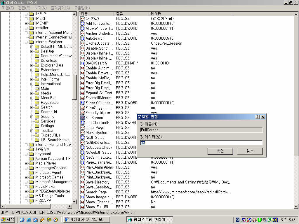 익스플로러 시작 시 미니 창으로 뜨는 것을 방지하자