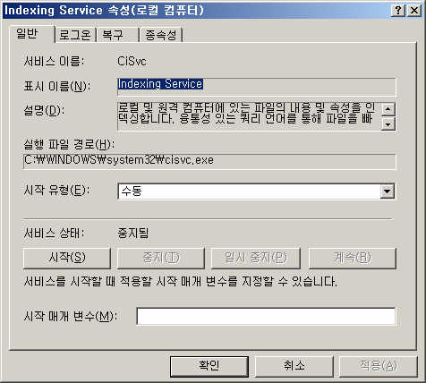 ① 제어판->관리도구->서비스->Indexing Service->속성->사용안함