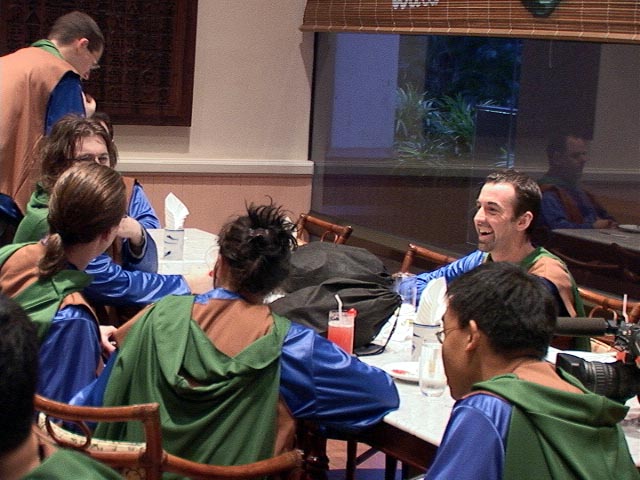 80~90여명에 달하는 기자들이 호빗의 옷을 입은채 버스를 기다리고 있는 광경은 정말 장관이었다. 이건 뒷이야기지만 행사가 끝나고 돌아오자 자신들의 모습은 쏙 빼놓고 호주에선 중국의 기자가, 일본에선 우리나라의 기자가, 중국에선 호주의 기자가 웹진을 비롯한 공중파 방송에 등장하는 진풍경이 연출됐다. 이런… 나도 다 퍼트릴테다. -_-;