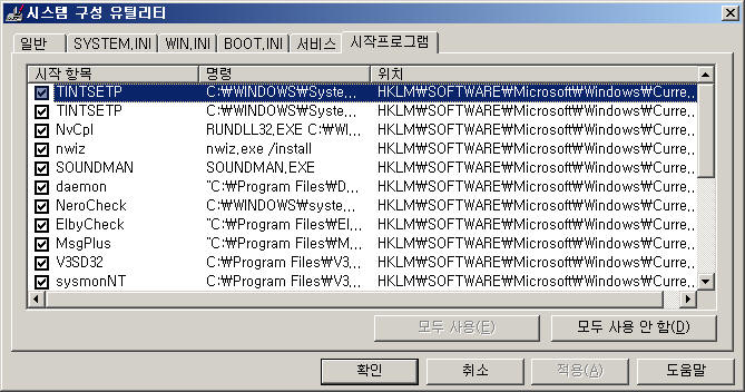 필요없는 서비스항목 해지해 부팅속도 올리기