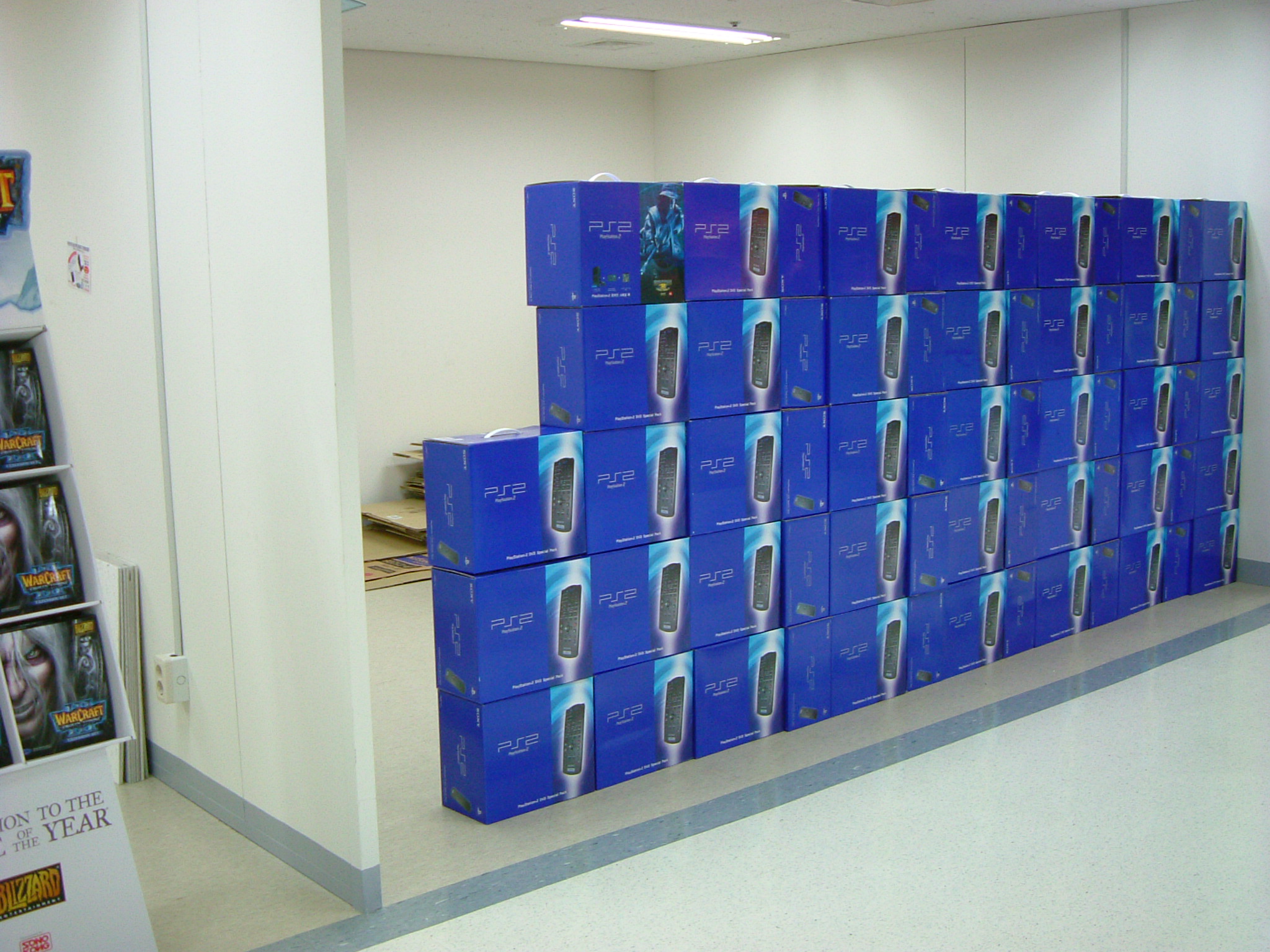 ▲ 가득 쌓인 PS2 빈 박스. 빈 박스가 이렇게 쌓인 건 혹시 DVD 리모콘과 PS2 본체를 분리해서 팔았기 때문!? |