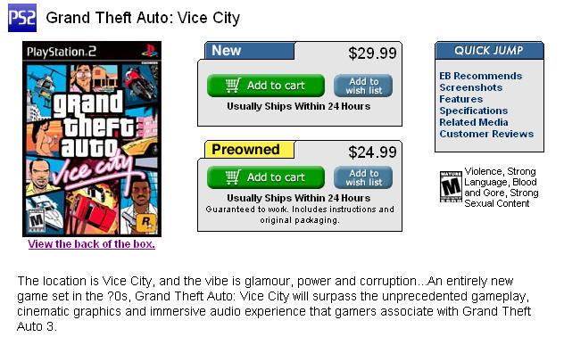 ▶ 외국의 온라인쇼핑몰에서는 게임등급 표시를 해 등급을 모르고 구입하는 일이 없도록 하고 있다 |