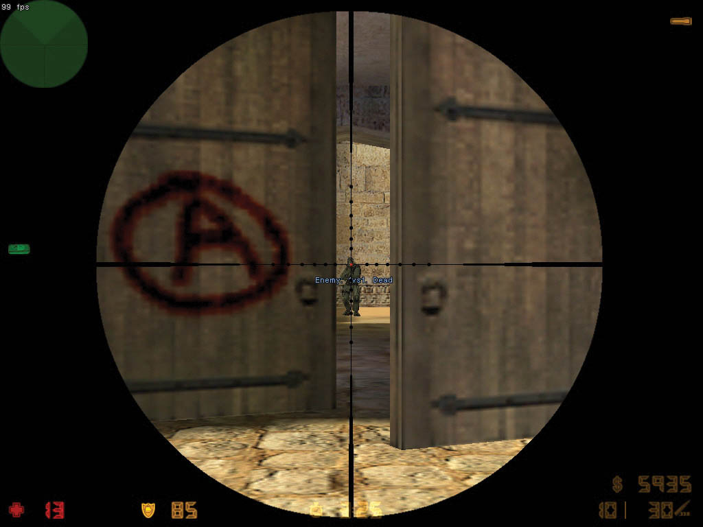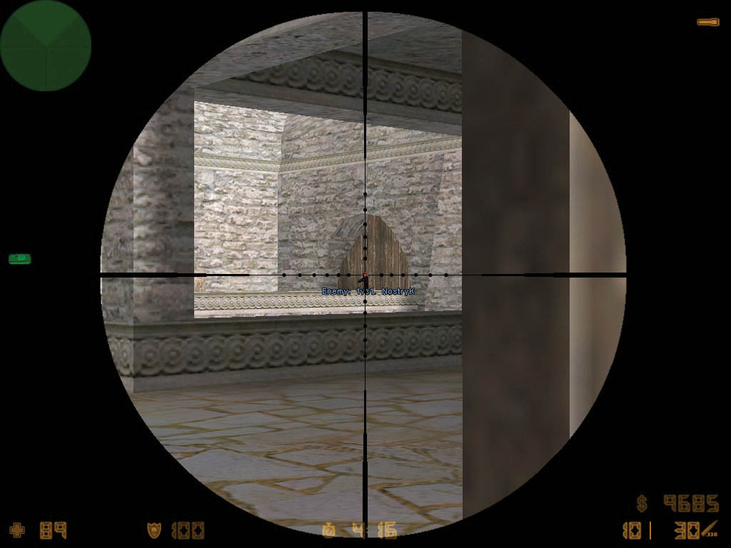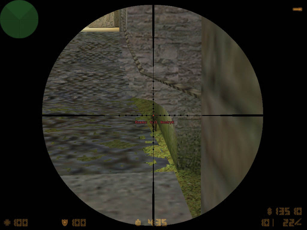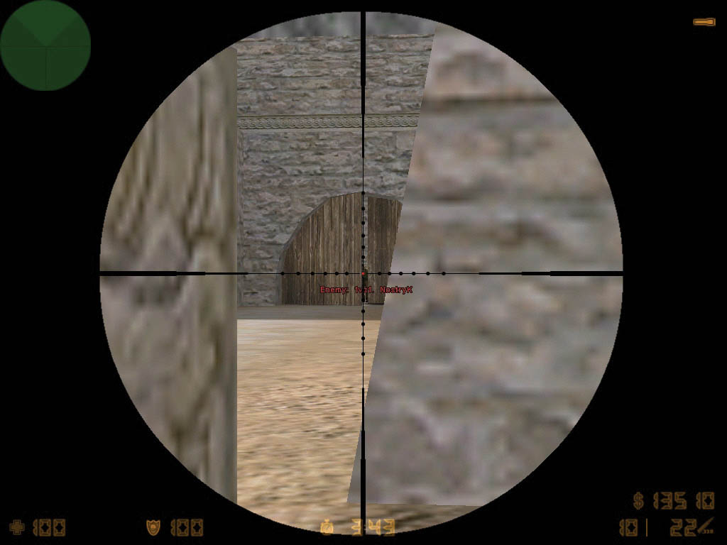 CT의 시작지점 옆의 문쪽 틈새로 AWP줌을 당기면 TR베이스 쪽 구멍이 조그맣게 보인다. AWP로 상대방을 죽일 수 있기 때문에 TR, CT 모두 조심해야 한다.