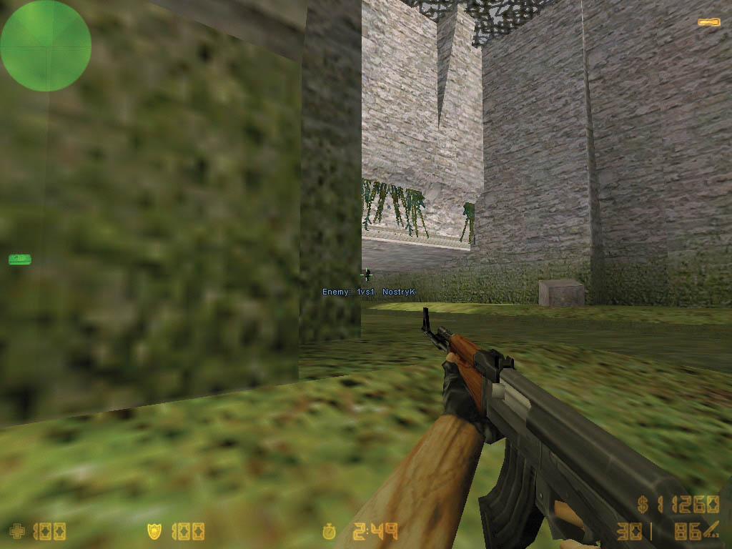 ■ Rifle: 카스가 1.3으로 패치도기 전까지만 하더라도 라이플은 찬밥신세를 면하지 못했다. MP5의 점프샷이 워낙 강력한데다가 라이플은 반동이 심해 타켓팅이 매우 힘들었기 때문이다. 그러나 패치를 통해 MP5의 유용성이 사라지고 플레이어들이 라이플의 타켓팅에 익숙해지면서 라이플은 장거리 근거리를 모두 커버할 수 있는 최고의 무기가 되었다. 라이플은 왠만한 두께의 벽이나 문 혹은 돌의 모서리 부분을 관통해 데미지를 입힐 수 있다.