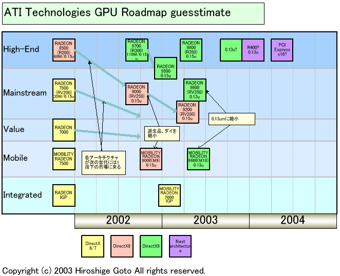 지포스와 라데온의 성능 차이는 대부분 쉐이더를 어디까지 적용했느냐에 따라 다르게 나타나고 있다. 픽셀 쉐이더 1.1 수준에서는 지포스 FX5950울트라가 전반적으로 뛰어난 모습을 보이지만 1.4 이상, 특히 2.0에서는 라데온의 높은 성능이 두드러진다. 이러한 현상은 지포스와 라데온의 버텍스 쉐이더 구조 차이에서 비롯된다.