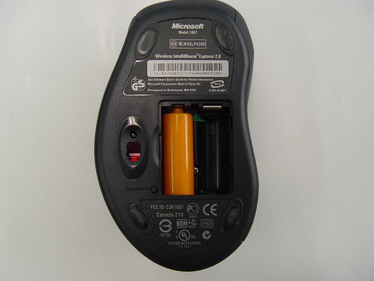 ▶ 마우스는 AA건전지 2개를 넣어야 하지만 1개를 넣어도 여전히 잘 동작하며 AAA 건전지를 넣으면 무게를 줄일 수 있다 |