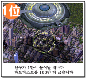 자타가 공인하는 천재 게임 디자이너 윌 라이트가 만든 심시티는 벌써 15년이 넘게 수많은 대머리들을 양산하며 시뮬레이션게임의 최고봉으로 올라섰다. 그러나 심시티 시리즈는 게이머의 경제능력에는 도통 관심이 없는 게임이다. 심시티의 인구가 30만을 넘어서면 당신의 PC가 게임하기에는 별로 적합하지 않다는 것을 알게 된다. 곧 50만을 돌파하게 되면 슬슬 PC를 업그레이드하고 싶은 욕망이 생긴다. 그러나 100만명을 돌파하는 도시를 건설하게 되면 당신의 PC는 왕가위 감독의 전매특허인 ‘점프컷’을 흉내내는 경지에 이르고 200만명을 돌파하는 도시를 건설하게 되면 조용히 울면서 심시티 4를 언인스톨하게 된다. 게임최적화가 얼마나 중요한지 온몸으로 보여준 게임. |