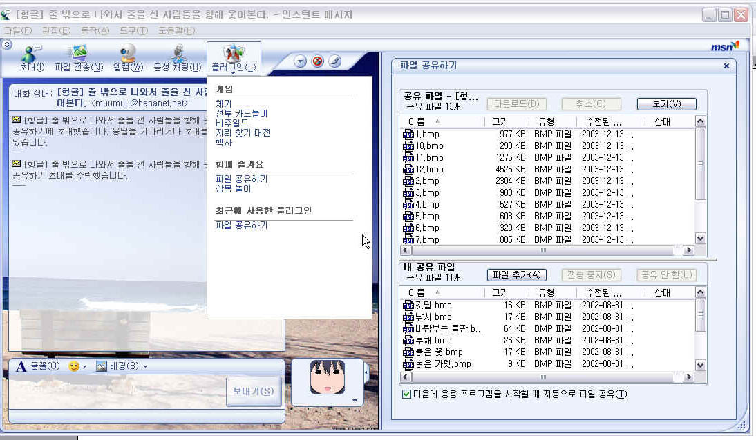 지금까지 MSN에서 즐길 수 있는 게임기능에 대해 알아봤다. 이 외에도 MSN메신저에서는 한 번에 다량의 파일을 보낼 수 있는 파일공유기능과 화상채팅, 음성채팅이 지원된다.