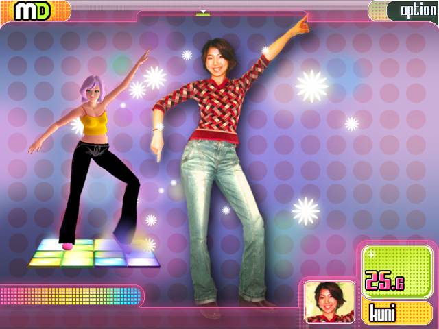 ▲ 아이토이 플랫폼을 이용한 게임의 한 예. 댄스를 따라한다는 점에서는 DDR과 비슷하지만 댄스를 하는 자신의 모습을 확인할 수 있다는 차이는 상당히 크다 |