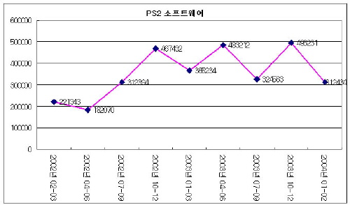 2002년 2월~3월 : PS2의 국내 런칭을 기해 많은 사람들이 PS2를 구입했다. 데이터를 봐도 알 수 있겠지만 다른 시기에 비해 월등히 높은 판매량은 사람들의 반응이 얼마나 뜨거웠는지 짐작할 수 있다. 하지만 이때 구입한 사람들의 대부분은 이미 PS2를 알고 있었던 게이머들이었다.