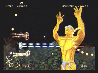 초형귀 성스러운 단백질 전설의 백미라면 무엇보다도 멘즈 빔(Men's Beam)을 꼽을 수 있다. 멘즈 빔!! 슈팅게임으로썬 특이하게도 커맨드 입력방식으로 방출되는 강렬한 빔! 이것이야말로 남자의 로망이다.