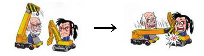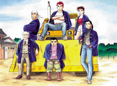 대형 건설중기에 탑승한 주인공들이 펼쳐는 대전액션! 게다가 사나이 중의 사나이