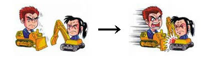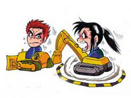 -_-; 어쨌든 게임은 스토리진행 후 대전, 스토리진행 후 대전이라는 방식으로 진행된다. 대체 중장비를 가지고 어떻게 전투를 벌일 것인가. 앞서 언급한 내용만 놓고 보면 단순하기 이를 데 없을 것이라는 상상이 들지만 덤프트럭, 크레인차, 불도저, 로드롤러와 같은 기체(?) 6대가 벌이는 전투방식은 꽤 심오한 조작성을 요구한다.