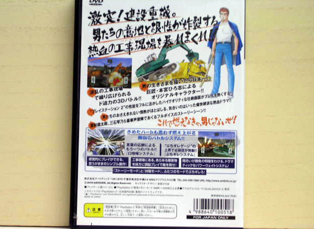 말 그대로 덤프트럭, 크레인 등 건설현장에서 쓰이는 중장비를 이용한 대전액션게임인 ‘금강’은 PS2의 성능을 십분 활용한 풀 3D 그래픽을 자랑한다. 문제는 케이스 뒷면의 뽀샤시 사진이나 제작사 홈페이지에서 볼 수 있는 오프닝 동영상과는 게임영상이 판이하게 다르다는 데 있다. 일명 ‘막나가는 쿠소작’이라고 불리는 게임들이 밟아가는 전철의 대표적인 사례를 보여주듯 ‘금강’은 처음부터 잘못 맞춰진 단추를 아예 다른 옷에 끼워버리는 대범함을 자랑한다.