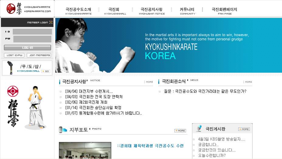 ▲ 극진공수도 연맹의 홈페이지. 극진 가라데에 대해 더 자세히 알고 싶다면 방문해보자(www.koreakarate.co.kr) |