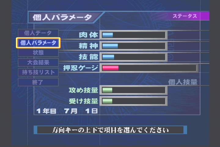 ▲ 메뉴를 보면 알겠지만 실질적으로 사용할 수 있는 항목은 오직 ‘진행한다(進む)’, 즉수련뿐이다 |