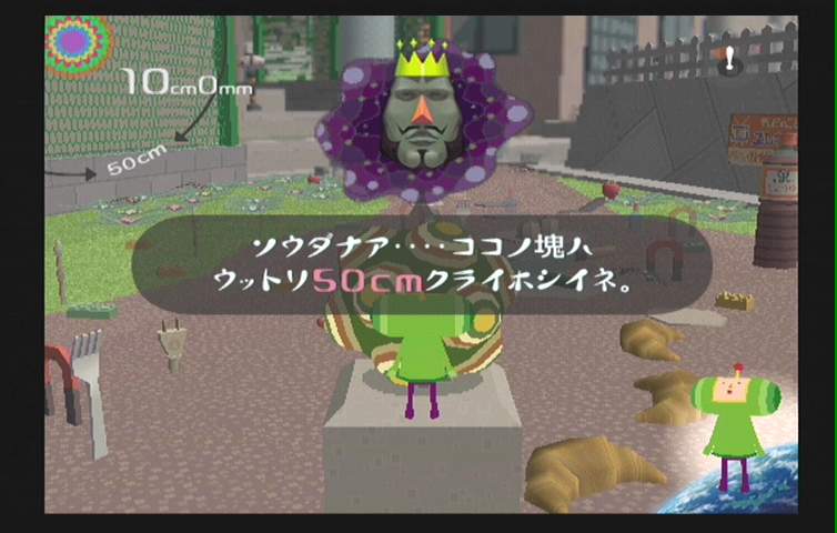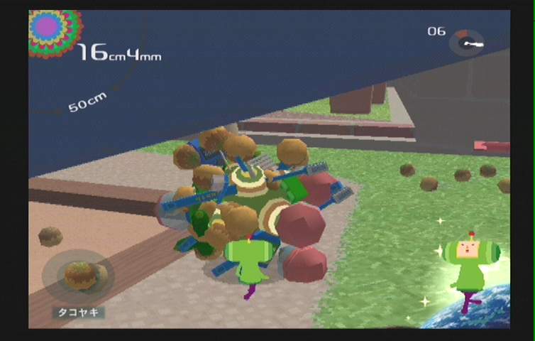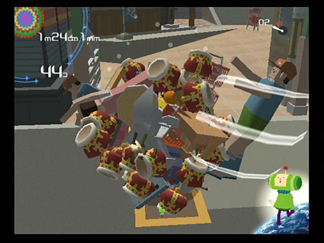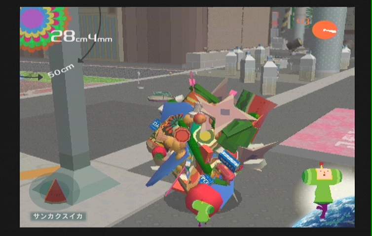 처음에 굴리는 구체의 크기는 Cm단위. 즉 초반 게임플레이에서는 허접한 컵하나, 공하나 심지어 꾸물거리는 달팽이마저도 왕자님에게는 생명의 위협을 가져다주는 무서운 공포일뿐이다. 하지만!!! 미터 단위의 구체로 키워지게 되면 게이머 자신은 신이 되어 버린다.