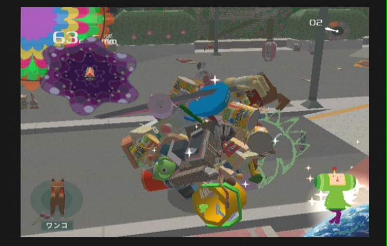 이제부터 왕자님은 말똥구리의 후손이 된마냥 굴리고 굴려서 주변의 모든 물건을 깔아뭉개고 붙여버린다. 자기 맘에 안드는 것(사실은 플레이어 마음에 안드는 것)은 모두 깔아뭉게서 구체를 만드는데 방바닥에 떨어진 비스킷, 압정, 건전지, 바둑알, 장기알 할 것 없이 모두모두 별의 재료가 된다.