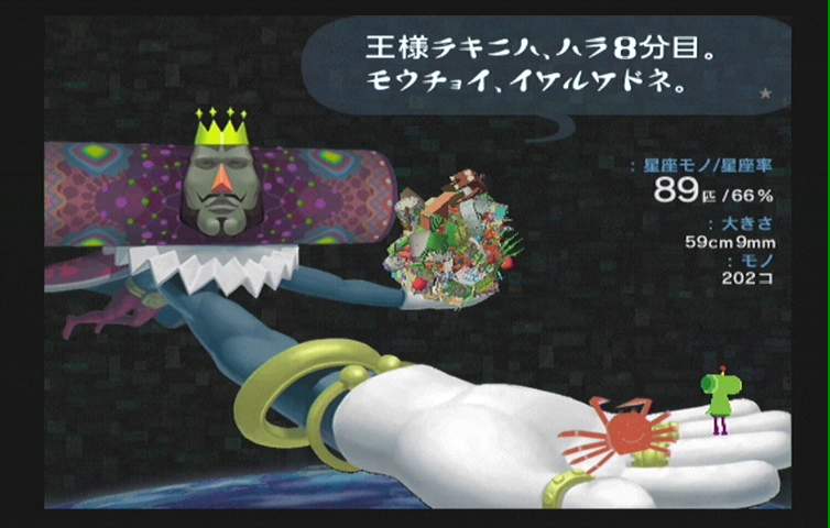 처음 시작하면 어느 한적한 방구석에서 시작하는데 달팽이도 기어다니고 압정과 쓰레기와 가정용품이 뒹구는 방에 왕자님이 살며시 나타난다. 이제부터 우리의 왕자님은 왕으로부터의 칙명을 하달받게되면서 본격적인 임무수행에 들어간다. 임무는 ‘별을 만들기’ 왕의 칙명은 ‘2분안에 2m 크기의 무엇인가를 만들어라!’. 우리의 왕자님은 은하계의 모든 별을 없애버린 무서운 왕의 명령에 까라면 까고 말아버린다. 그리고 정말 까버린다.