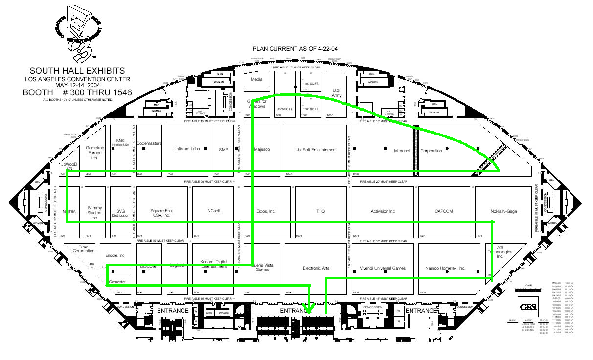 일단 올해 E3의 화두인 소니의 PSP와 닌텐도의 DS를 내손으로 직접 만져보고 체험해보는 기회를 가지는 것이 오늘의 목표. E3에 온 사람만이 느낄 수 있는 기회가 아니던가. 일단 12일에 있던 소니 컨퍼런스에서 발표한 PSP가 나의 관심을 집중시켰기에 일단 소니 부스로 출발.