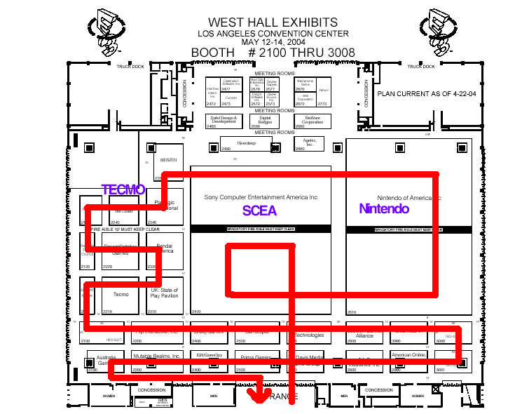 다행히도 소니 부스와 닌텐도 부스는 웨스트 홀에 나란히 자리 잡고 있었기에 E3사상 최고의 최단거리 알짜 관람부스로 손꼽히고 있었다. 특히 올해는 PSP VS NDS의 구도가 아니던가. 하지만 악몽의 시작이 지금부터 시작될 줄은 그땐 몰랐다.