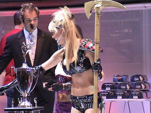 ▲이벤트에서 우승하면 트로피와 뒤에 보이는 닌자가이덴 Xbox 컨트롤러... |