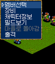 ▲타운모드에서는 다양한 비전투활동을 할 수 있으며 이동은 모두 커맨드 선택방식으로 이뤄진다 |