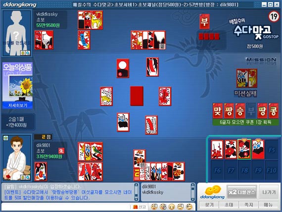이제 맞고에 대해 감이 오는가? 필 받은 사람은~ 바로 접속해 보자.