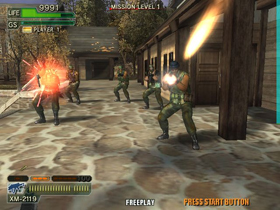 Xbox와 호환되는 치히로 기판을 사용해 개발한 G-S.O.S는 타이틀 명에서도 알 수 있듯이 유저가 직접 가상공간에서 전투훈련방식으로 제공되는 미션을 제한된 조건 내에서 클리어해 클래스를 승급시키는 체감형 아케이드게임으로 이번 쇼에는 총 4대의 시유대가 마련됐다.