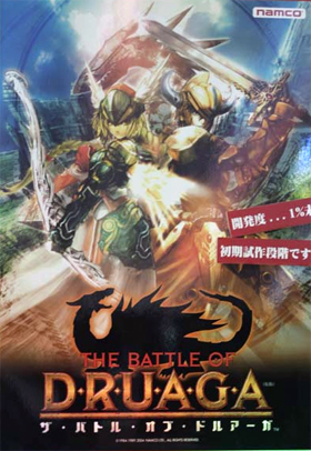 얼마 전 PS2용 타이틀로 발매된 아리카의 ‘더 나이트메어 오브 드루아가: 이상한 던전’과는 드루아가라는 모티브만 같을 뿐 큰 연관성이 없는 ‘더 배틀 오브 드루아가’. 회장에서 공개된 포스터에도 명기된 ‘개발도 1% 미만’, ‘초기 시작단계입니다’라는 문구처럼 현재 더 배틀 오브 드루아가에 대해 알 수 있는 것은 아주 기본적인 것뿐.
