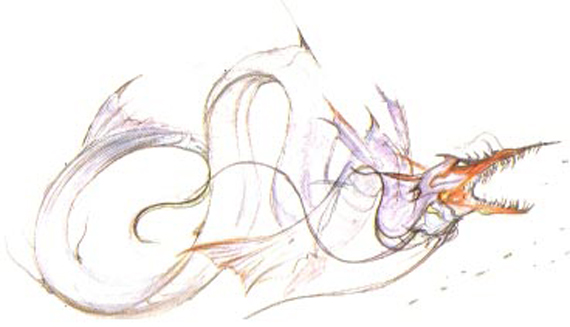 요시타카 선생이 그린 리바이어던의 원화. 영락없는 지느러미 달린 바다뱀