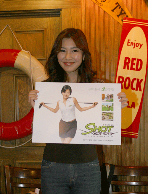 온라인 골프게임 샷온라인의 모델로 레이싱걸 이선영 씨가 낙점됐다는 소식을 들었을 당시만 해도 골프와 레이싱걸이 무슨 연관성인가하는 의아함이 나를 혼란스럽게 만들었다. 당시만 해도 레이싱걸을 모델로 삼은 게임은 적어도 레이싱을 장르로 삼고있는 게임들이 전부였을 뿐 골프라는 게임과 레이싱걸에 대한 이미지는 결코 합쳐지질 않았다. 하지만 TGS에서 만난 이선영은 레이싱 걸이라는 선입관을 깨고 당당한 게임 모델로서의 이미지를 굳히는데 부족함이 없었다. 그리고 샷온라인 이벤트를 진행함에 있어서 이선영과 게이머들과의 만남을 주선하는 방향으로 마음을 굳히고 본격적인 이벤트 작업에 들어갔다. |